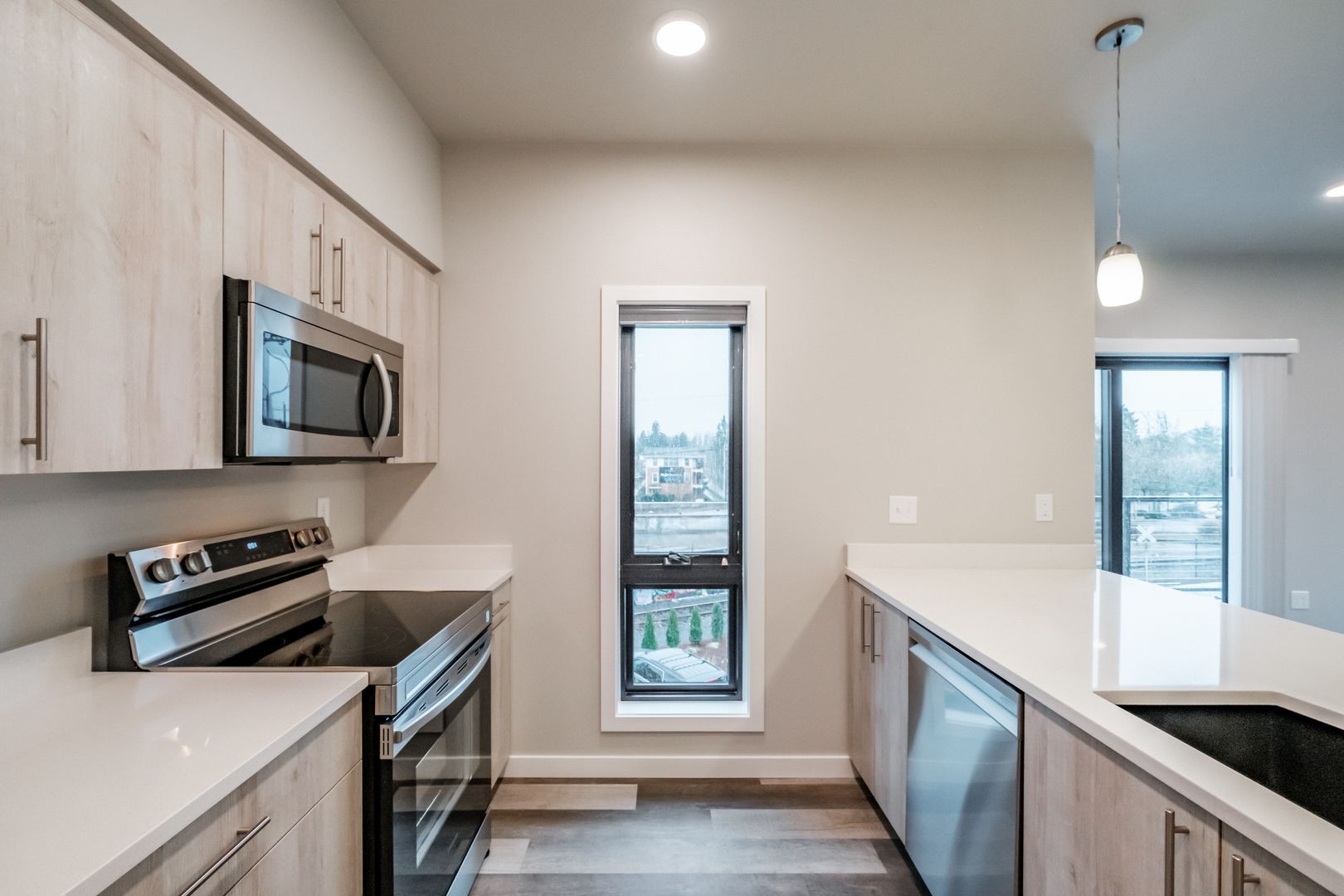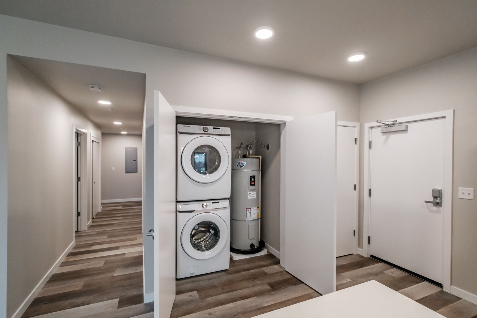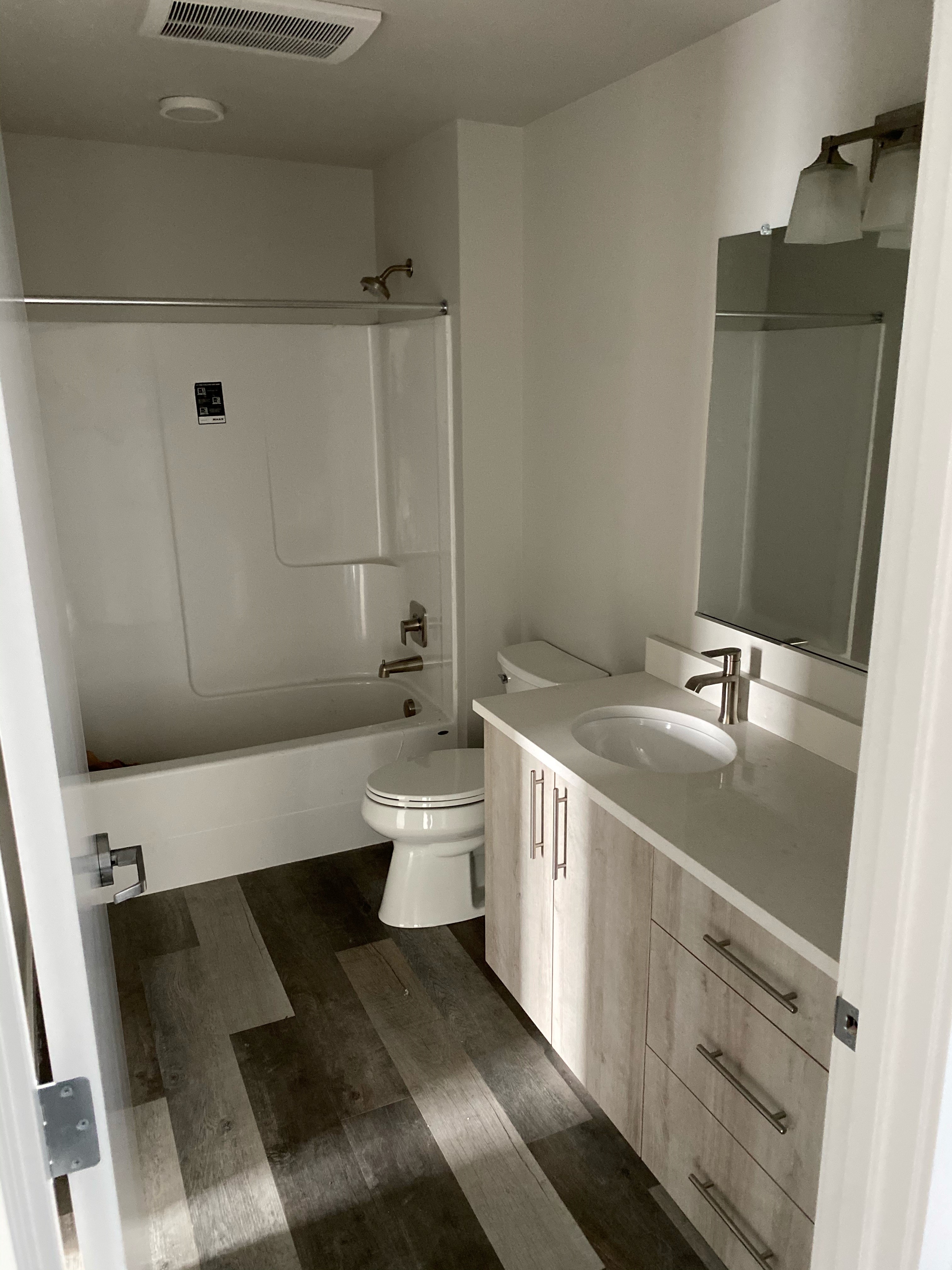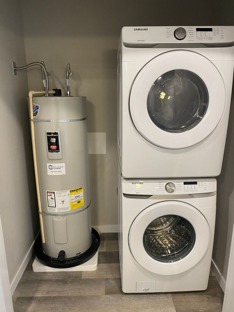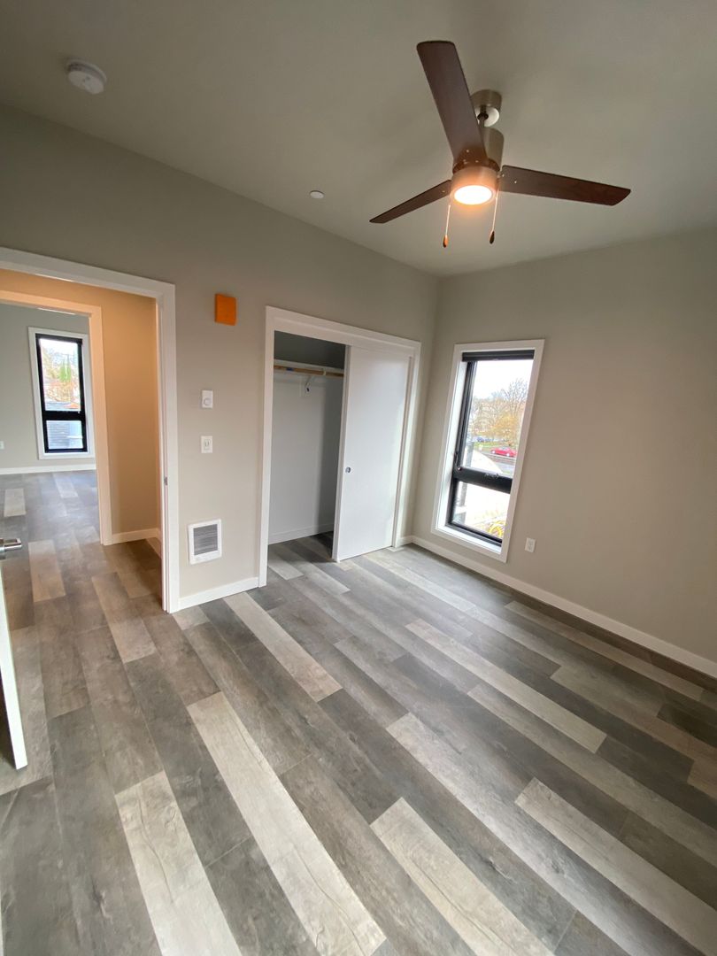 Brand new 3 bed 3 bath apartment centrally located off 7th street. Close to Western Blvd, OSU campus, downtown Corvallis, restaurants and more! Apartment features quartz countertops throughout, stainless steel appliances, stackable washer/dryer, LVP flooring, tall windows, vaulted ceilings and outdoor patio/balcony. Each bedroom has private bathroom. Ductless heat pump with air conditioning. Off street parking, locked central entryway.