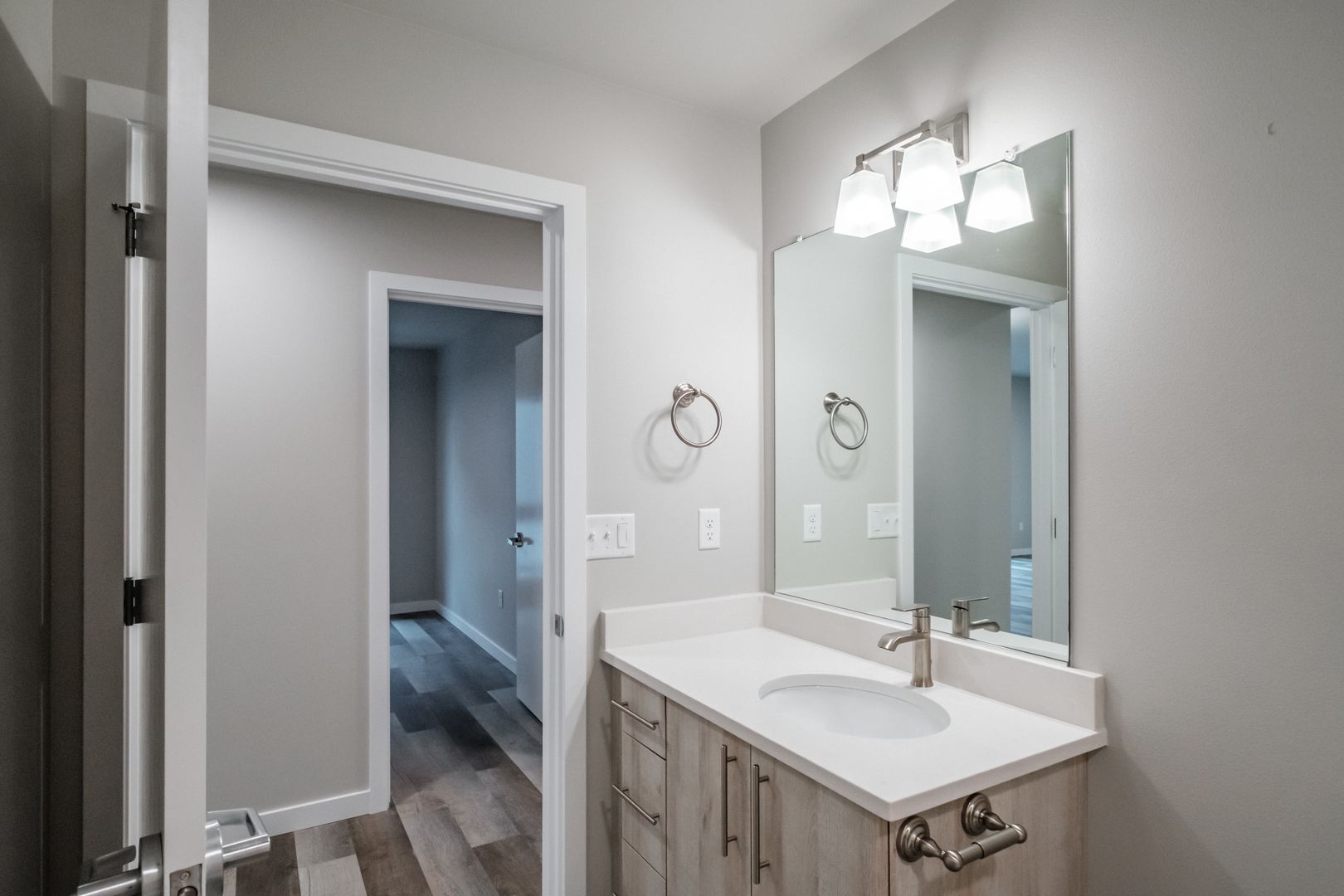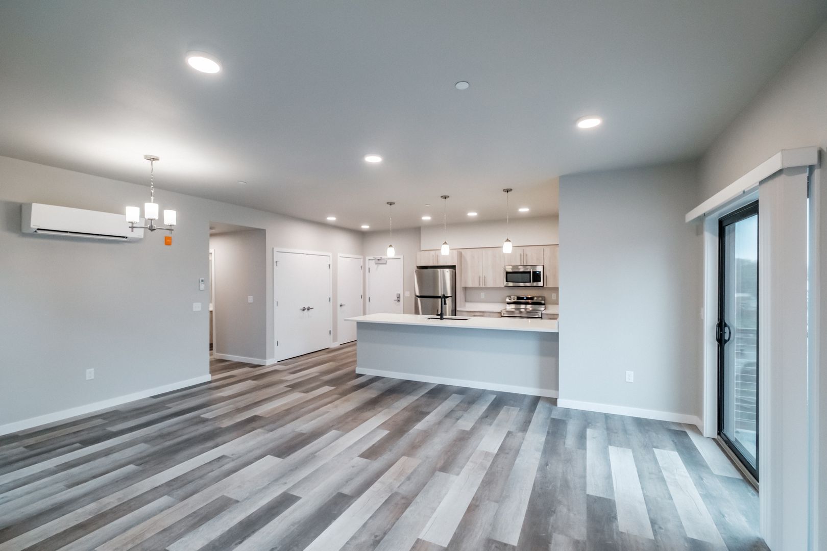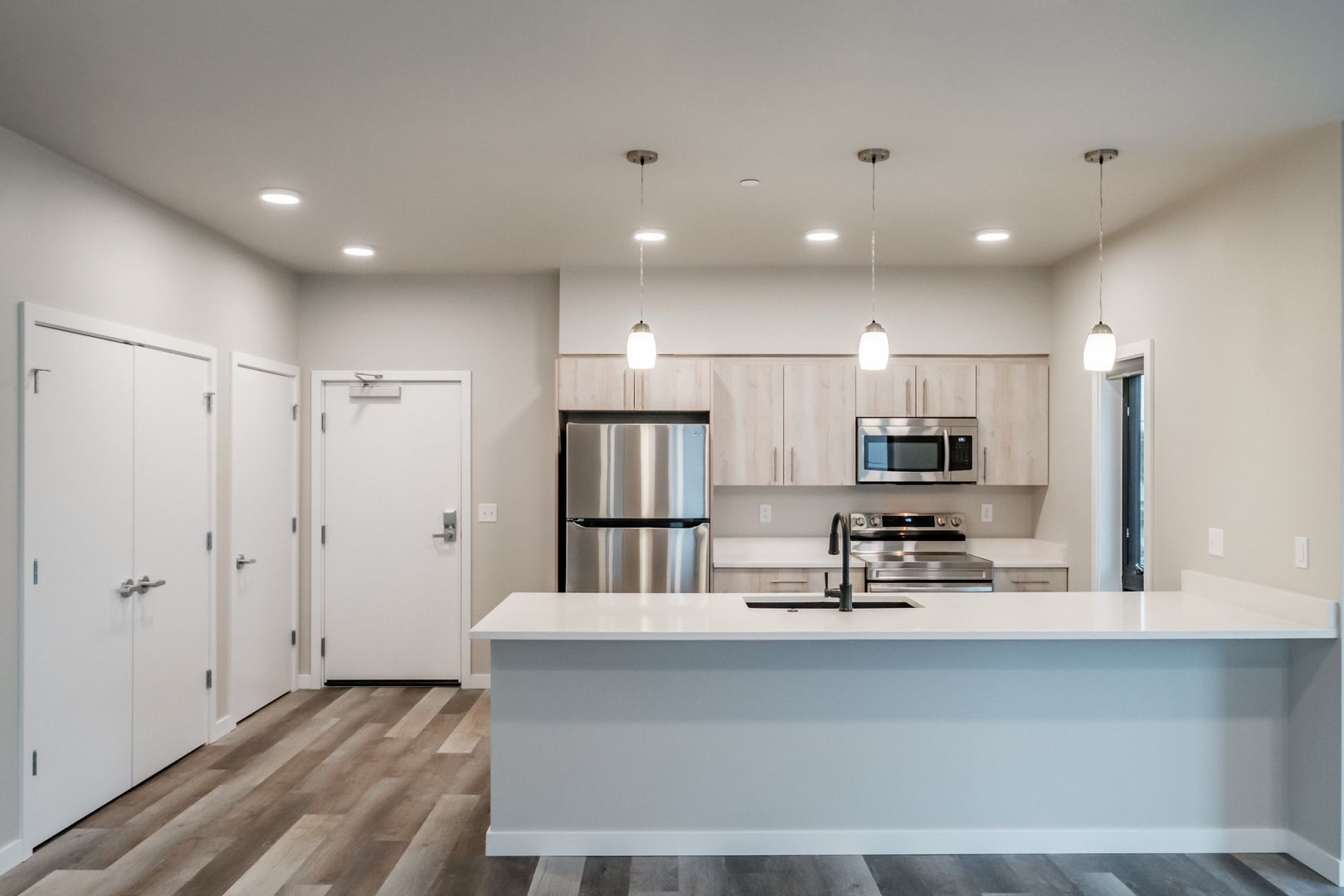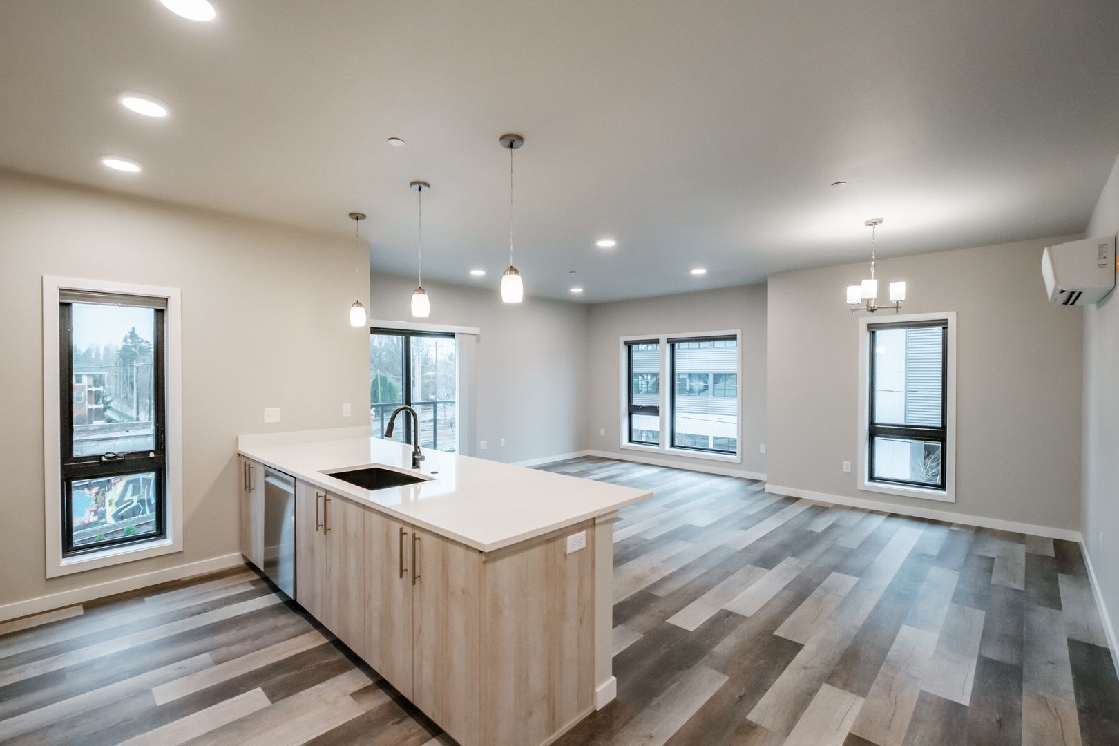 Brand new 3 bed 3 bath apartment centrally located off 7th street. Close to Western Blvd, OSU campus, downtown Corvallis, restaurants and more! Apartment features quartz countertops throughout, stainless steel appliances, stackable washer/dryer, LVP flooring, tall windows, vaulted ceilings and outdoor patio/balcony. Each bedroom has private bathroom. Ductless heat pump with air conditioning. Off street parking, locked central entryway.